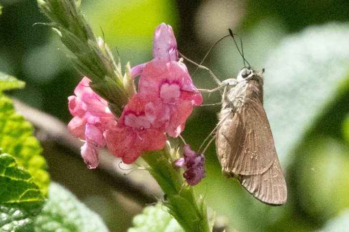 Skippers (Hesperiidea) are a large family of butterflies. Many of these rest with partially overlapped wings, appearing somewhat triangular. Others rest with fully flattened wings. They are identified by clubs on the antennae that are hooked backwards. They tend to have plump bodies and small wings compared to their body size. They tend to have much larger compound eyes than other butterflies. They usually have drab colors and will seldom have green color or metallic iridescense. Their host plants are typically grasses. To increase skippers in your garden, leave some grasses to grow to maturity. Since this tends to look more like neglect of your garden than butterfly friendliness, leaving some unmown meadow areas near your butterfly garden is optimal. The butterfly stage is attracted to legumes and composites.