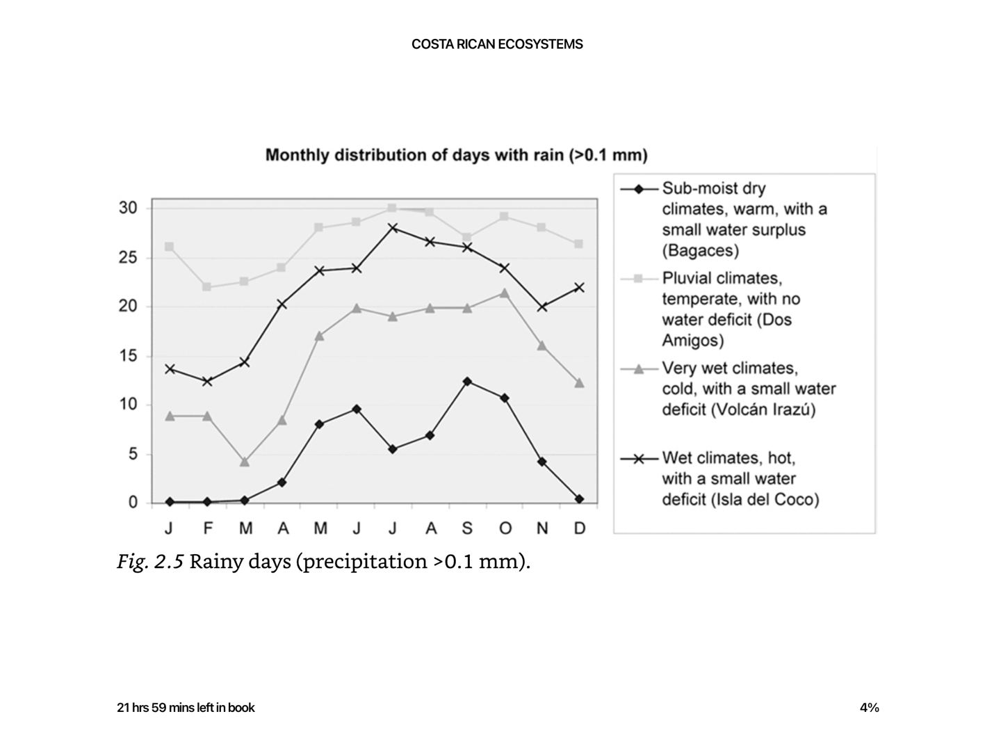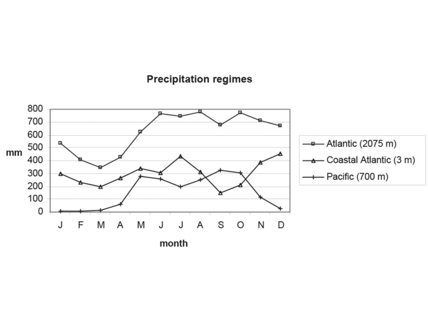 Here are a couple of graphs from Costa Rican Ecosystems [Herrera, W. (2016) Chapter 2: Climate of Costa Rica. In M. Kappelle (Ed.). Costa Rican Ecosystems (pp. 19-29). Chicago and London: Univeristy of Chicago Press.] that demonstrate the problem.