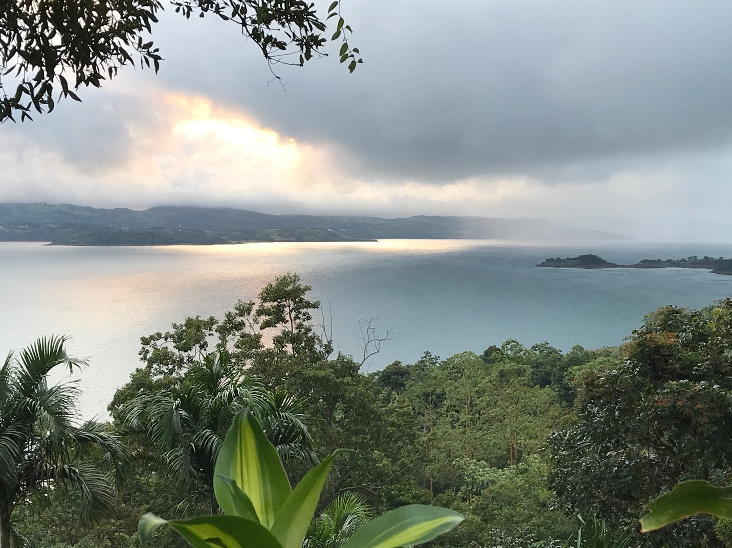 Rain storm moving across Lake Arenal, in this case toward Nuevo Arenal.