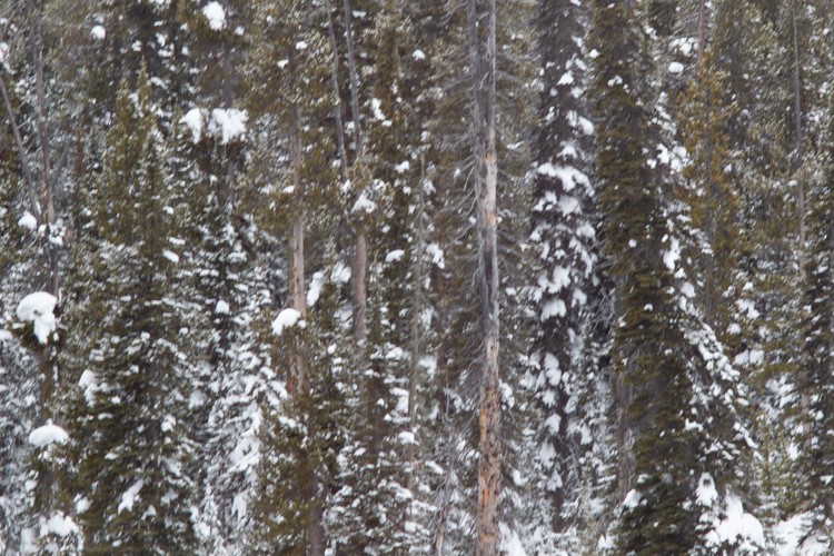 Evergreen forest in Yellowstone National Park, USA. Temperature is 40 degrees below zero. At this temperature, Celsius and Fahrenheit readings are identical