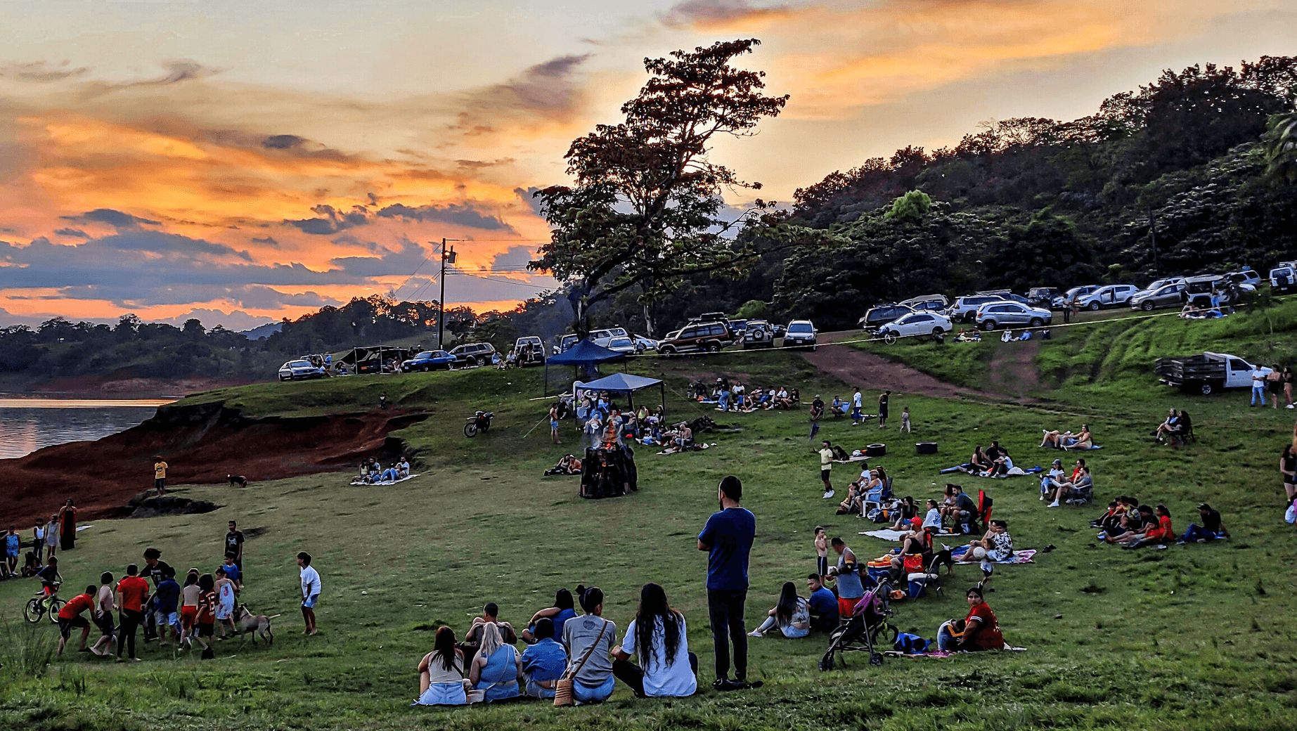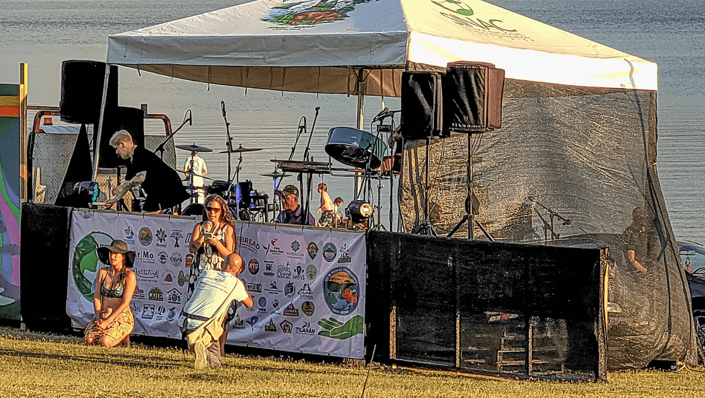 Suena mi alarma musical: "Son las 5 de la mañana", una canción de Juan Luis Guerra. La apago y me quedo en cama. Al rato Tuanis, nuestro gato, maúlla con insistencia porque sabe que tenemos el Festival... y además tiene hambre. Vic y yo hicimos café y salimos antes de las 7am. Varios minutos después ella estaba en el Lago y yo estaba coordinando el traslado de mesas y sillas desde el redondel con el voluntariado. En el Parque del Lago María, Marynes, Kenneth, Andru y Tim tenían todo listo: zonas de charlas, feria, parqueo y camping delimitadas, toldos ordenados, basureros dispuestos, voluntariado activo? solo a la espera de la prueba de sonido. Abrimos la entrada del Lago solicitando una pequeña colaboración.