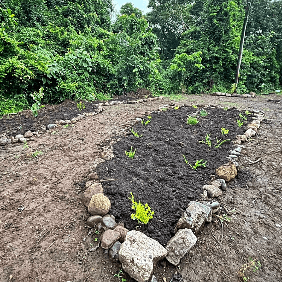 En esta oportunidad logramos avanzar con xito en la siembra, la decoracin de jardines con piedras, la construccin de banquetas con tecnologa adobe y la limpieza de la maleza natural. Esta vez contamos con tierra negra buensima, matas de flores nativas y un gran equipo de trabajo que cada vez se va acoplando mejor.